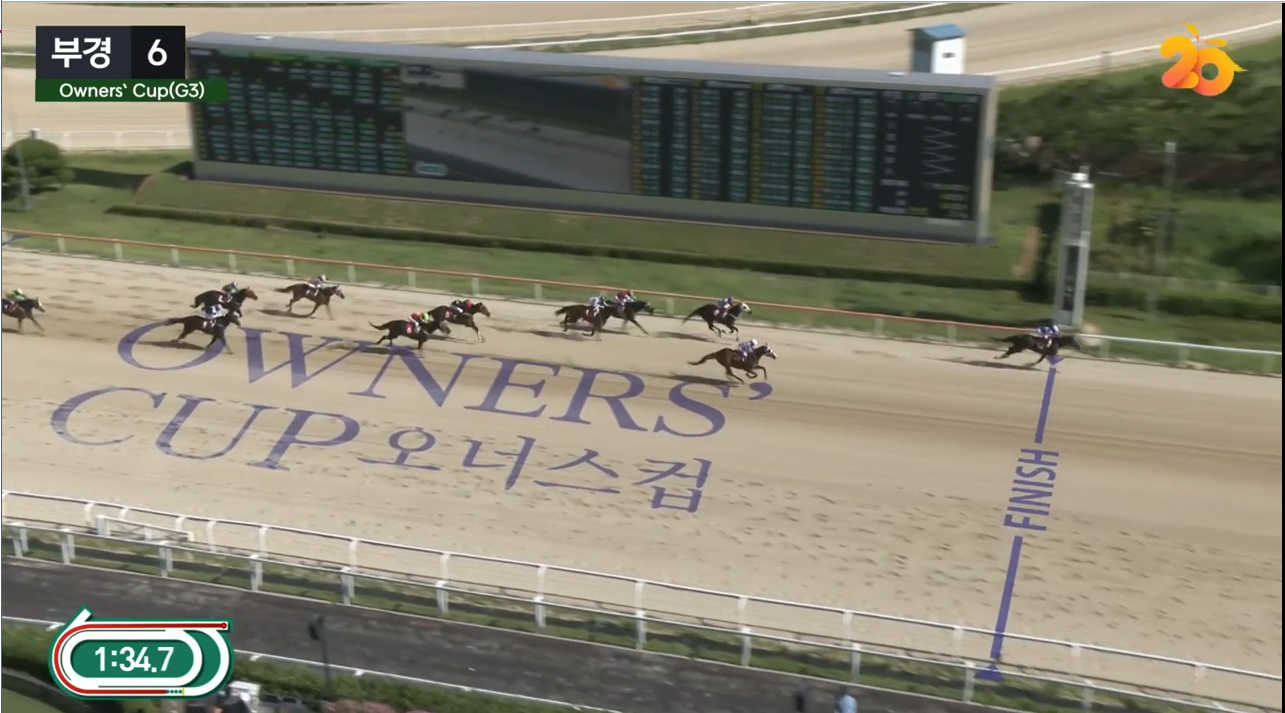가장 눈에 띈 장면은 결승선 200M 전방. 선두를 유지하던 클린원을 바짝 따라붙은 한강클래스가 오른쪽 외곽에서 폭발적인 탄력을 선보이며 역전에 성공했고, 결승선 직전에서는 오히려 여유 있는 우승으로 마무리했다.