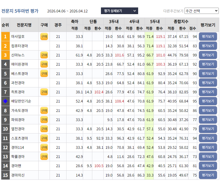 4월25일 토요경마 예상지